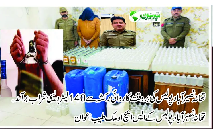 لاہور تھانہ نصیر آباد پولیس کی بروقت کاروائی رکشہ سے 140 لیٹر دیسی شراب برآمد