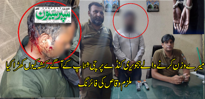میرے وزن کرنے والےہجویری کنڈہ پرچی شٹاپ کے آگے رکشہ کیوں کھڑا کیا ملزم وقاص کی فائرنگ