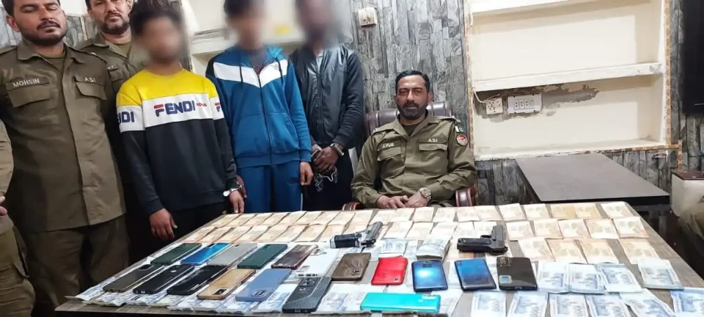 گرفتار ملزمان میں گینگ کا سرغنہ احسن عرف راجو اوراسکےساتھی فیضان، عمیر، راہول اور ساہل شامل،