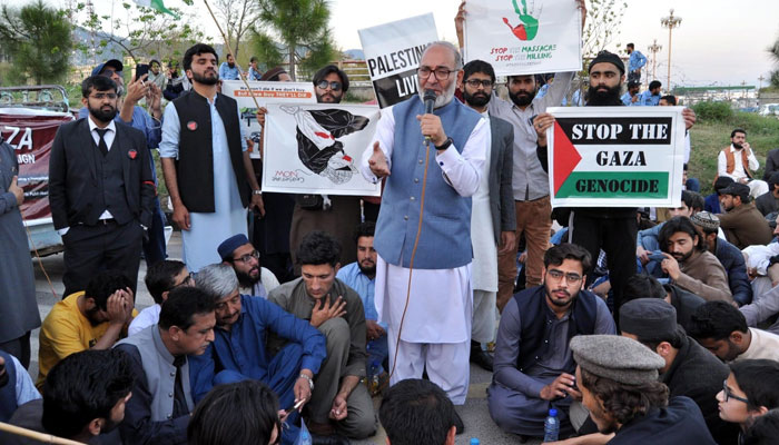 غزہ بچاؤیکجہتی دھرنے پر اسلام آباد میں دفعہ 144کی خلاف ورزی پر جماعت اسلامی کے سابق سینیٹر مشتاق احمد اور منتظمین کےخلاف مقدمہ درج کرلیا گیا۔