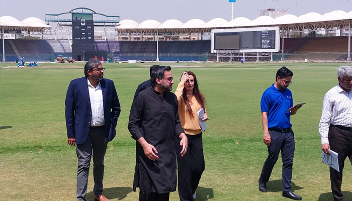 دو رکنی آئی سی سی وفد سینئر منیجر و ایونٹ آپریشنز سارا ایڈگر اور منیجر عون زیدی پر مشتمل تھا جنہوں نے نیشنل بینک اسٹیڈیم کا دورہ کیا اور وہاں انتظامات کا جائزہ لیا۔