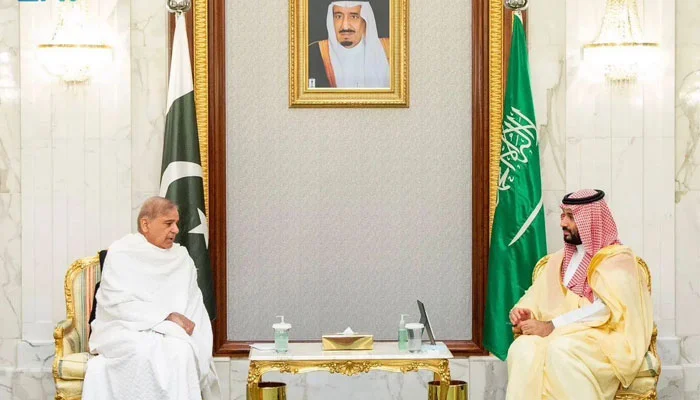 ریاض میں سعودی ولی عہد محمد بن سلمان کی وزیراعظم شہباز شریف سے ملاقات ہوئی جس میں انہوں نے پاک بھارت کشیدگی دور کرنےکے لیے بات چیت پر زور دیا۔