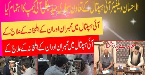 الاحسان ویلفیئر آئی ہسپتال کے تعاون سےفری میڈیکل آئی کیمپ کا اہتمام کیا آئی ہسپتال میں ممبران اور ان کے اہلخانہ کے علاج کے لئے لاہورپریس کلب کے ساتھ معاہدے پر بھی دستخط ہوئے