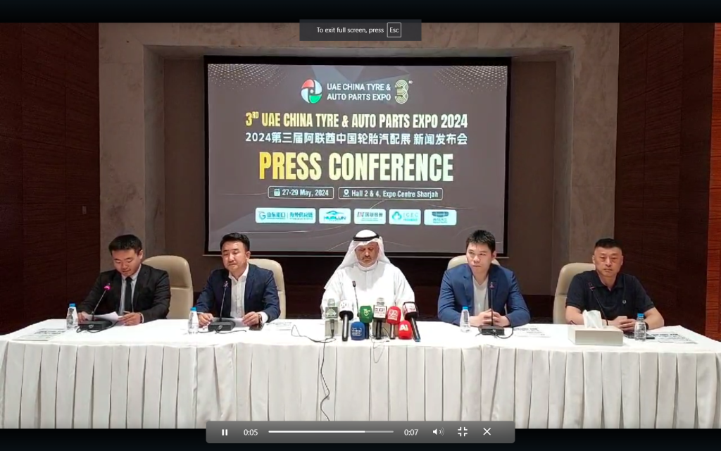 چینی ٹائر اور آٹو پارٹس کی صنعتوں تک علاقائی مارکیٹ کو براہ راست رسائی فراہم کرنے کے مقصد سے، تیسری یو اے ای چائنا ٹائر اینڈ آٹو پارٹس ایکسپو 2024 ایکسپو سینٹر شارجہ میں 27 مئی 2024 سے شروع ہو گی جس کا اعلان ایک پریس کانفرنس میں کیا گیا۔