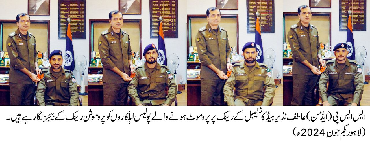 ترقی پانے والوں میں ہیڈ کانسٹیبل جنید الحق، ہیڈ کانسٹیبل عمیر کبریا، ہیڈ کانسٹیبل عظیم، ہیڈ کانسٹیبل وقاص، ہیڈ کانسٹیبل نعیم، ہیڈ کانسٹیبل محمدمبشر، ہیڈ کانسٹیبل وقاص اورہیڈ کانسٹیبل شعیب شامل ہیں۔