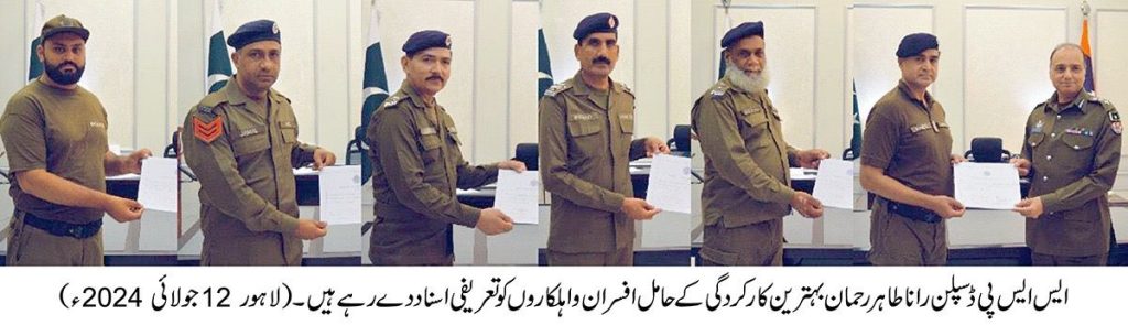 بہترکارکردگی کے حامل افسران و اہلکاروں کی حوصلہ افزائی کیلئے ہر سطح پر اقدامات جاری رہیں گے۔ سربراہ لاہور پولیس