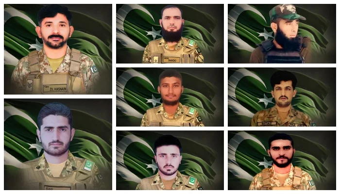 آئی ایس پی آر کے مطابق شہید ہونے والوں میں نائب صوبیدار محمد شہزاد، حوالدار ظلِ حسین، حوالدار شہزاد احمد، سپاہی اشفاق حسین، سپاہی سبحان مجید، سپاہی امتیاز خان، سپاہی ارسلان اسلم اور ایف سی کے لانس نائیک سبز علی شامل ہیں۔