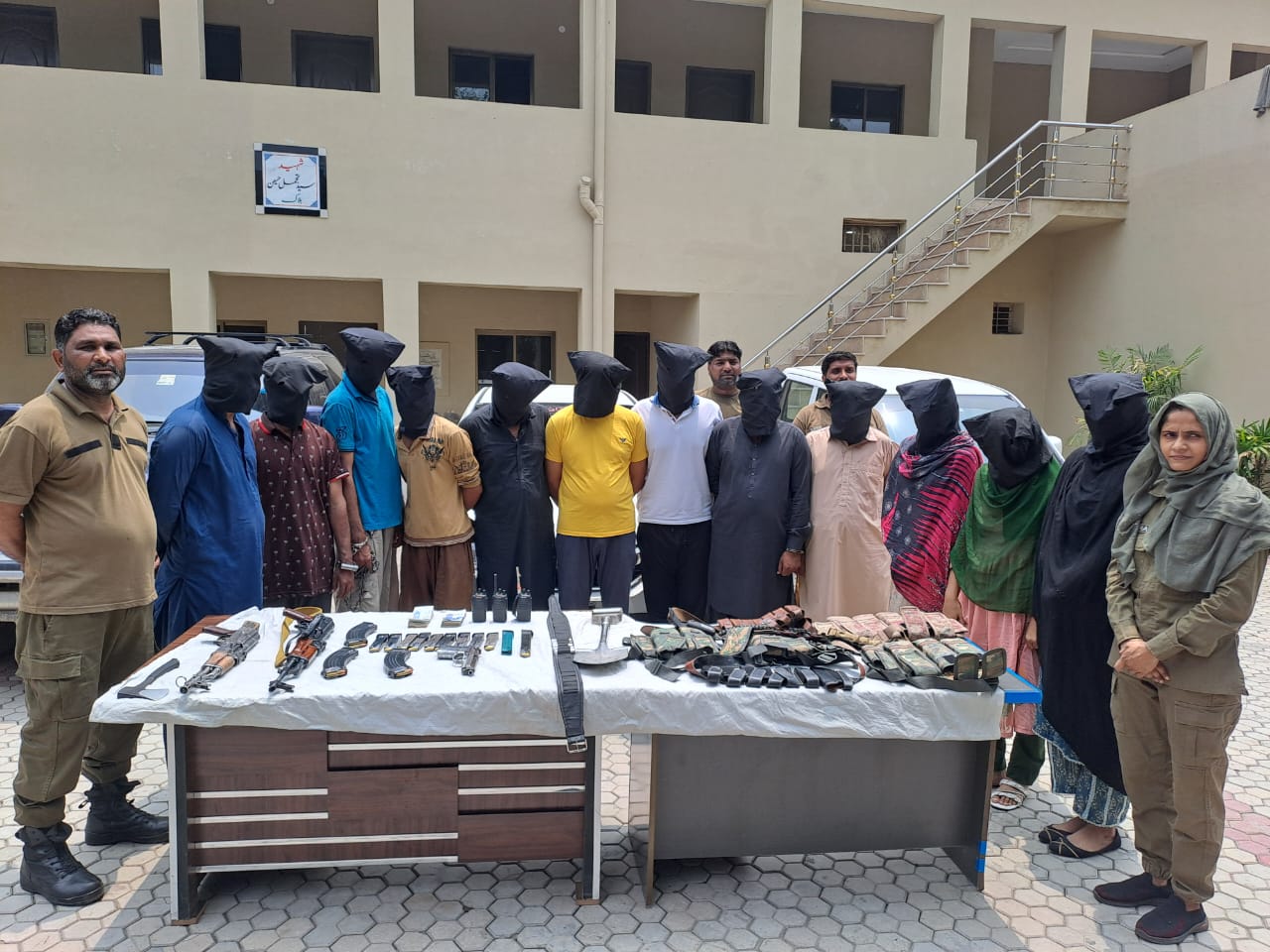 گرفتار ملزمان میں آمنہ عروج،ممنون حیدر،ذیشان قیوم، جاوید اقبال، تنویر احمد، فلک شیر، قیصرعباس،رشید احمد، میاں خان، بابرعلی،شمائل بی بی اور مریم شہزادی شامل،