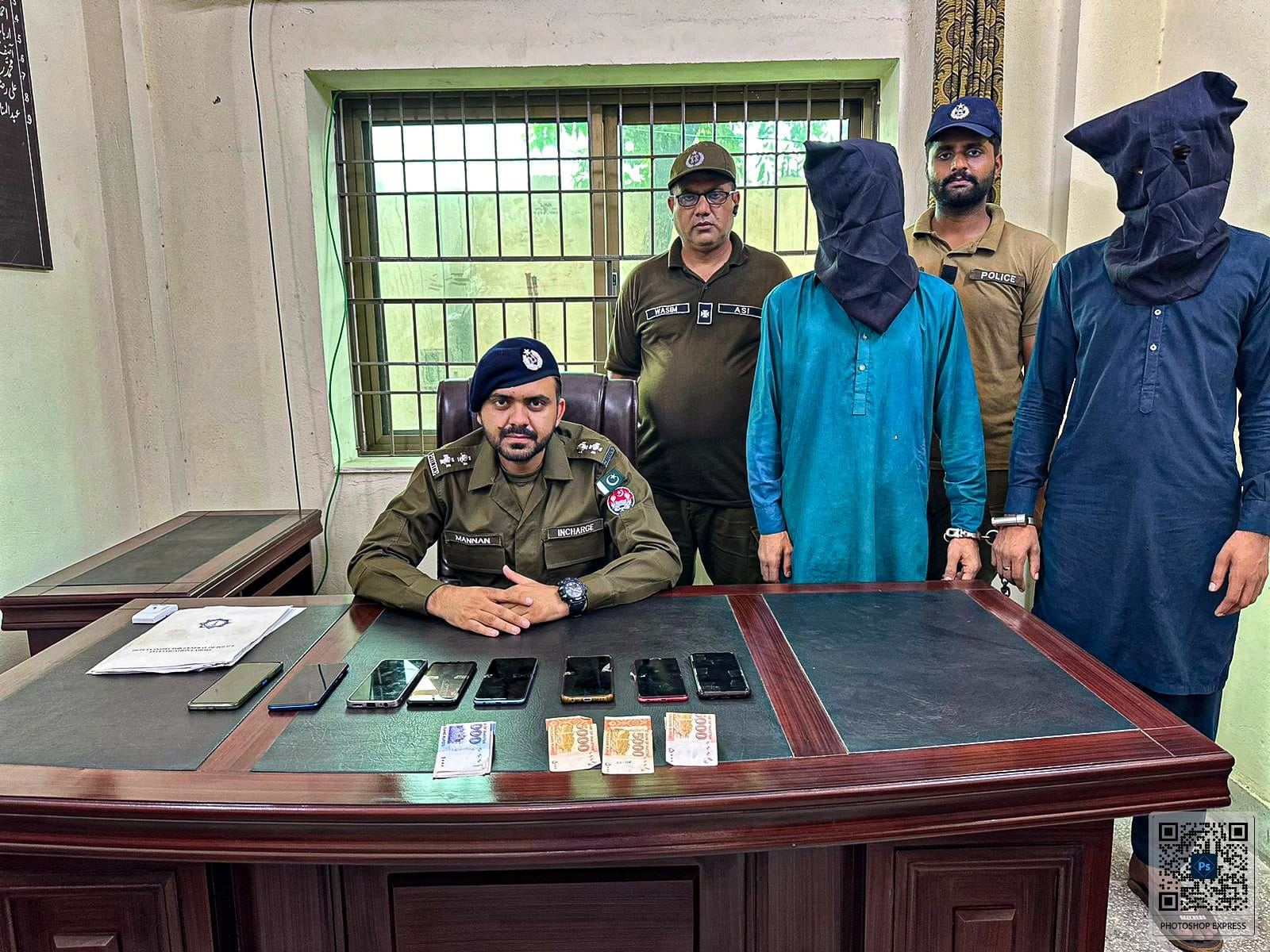 گرفتار ملزمان میں گینگ کا سرغنہ حسنین اور اس کا ساتھی عجب گل شامل