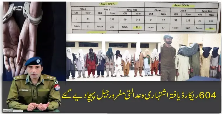 604 ریکارڈ یافتہ اشتہاری و عدالتی مفرورجیل پہچا دیے گئے