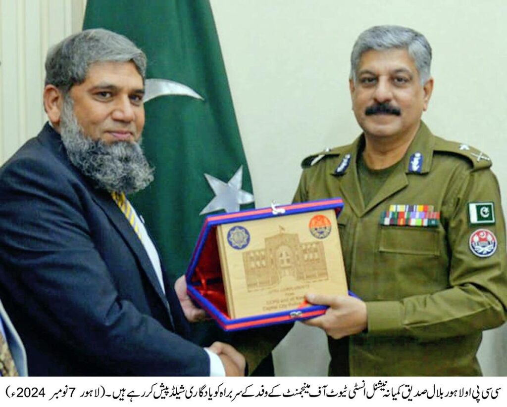 نیشنل انسٹیٹیوٹ آف مینجمنٹ کے 13رکنی وفد کی سی سی پی او بلال صدیق کمیانہ سے ان کے دفتر میں ملاقات