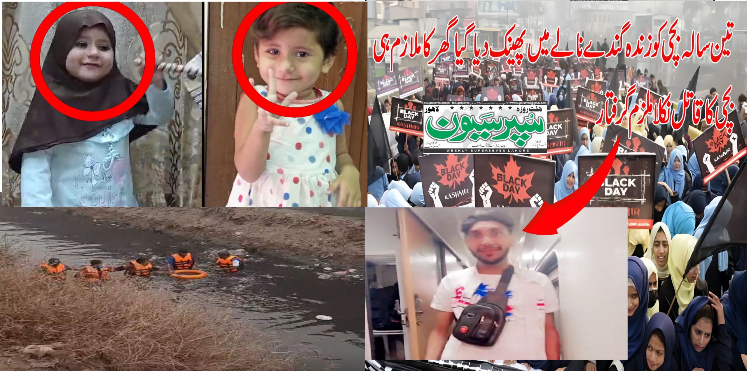 لاہورمیں تین سالہ بچی کو زندہ گندے نالے میں پھینک دیا گیا گھر کا ملازم ہی بچی کا قاتل نکلا ملزم گرفتار.