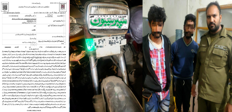 ملزمان کے خلاف موٹر سائیکل چوری کر کے فرار ہونے کی کال پولیس کنٹرول پر اناؤنس ہوئی تھی۔