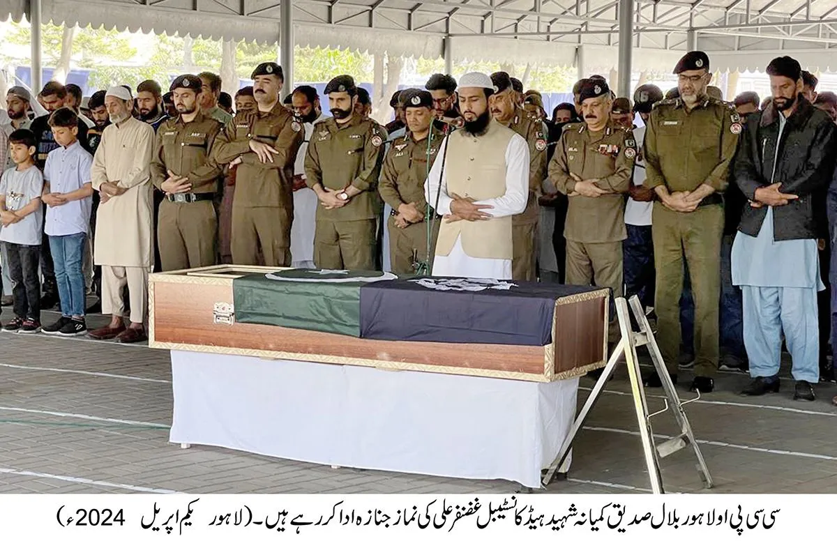 سی سی پی او لاہور کی پولیس لائنز قلعہ گجر سنگھ آمد، شہید ہیڈ کانسٹیبل غضنفر علی کی نماز جنازہ میں شرکت
