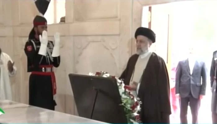 ایران کےصدرابراہیم رئیسی نے علامہ اقبال کے مزار پر حاضری دی جہاں انہوں ن پھول رکھے اور فاتحہ خوانی کی۔